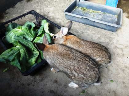 このごろ野菜が増えてきたので、よく食べて元気な二郎君とシロとチャコ。