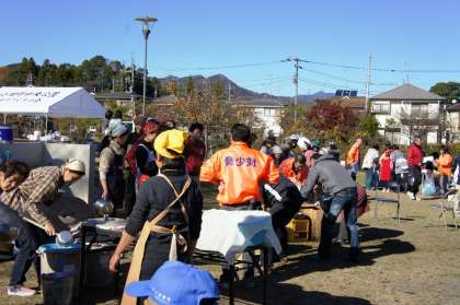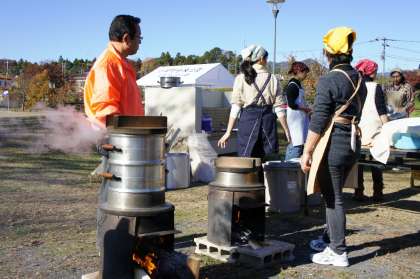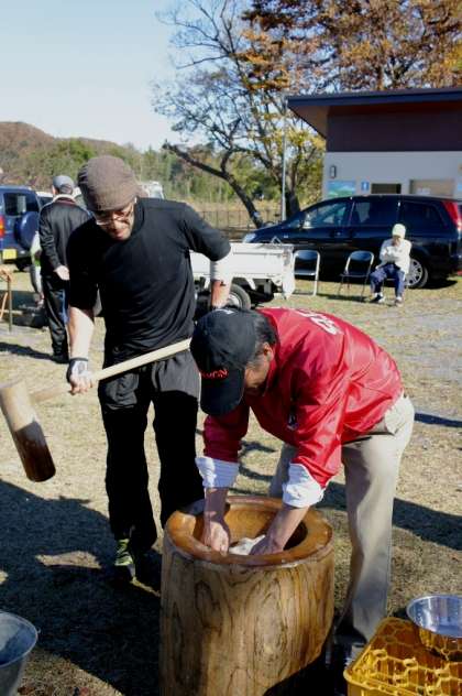 平行して「餅つき」と「豚汁・ウインナー」の調理が始まりました。