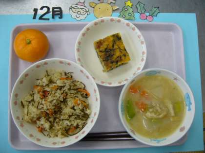 12月7日(水)の給食は「にんじん昆布ごはん」