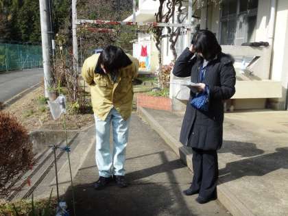 11時から放射線量の測定に、八王子市の職員の方達が来校しました。