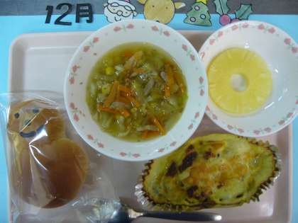 「雪だるま型パン」「パンプキングラタン」「野菜スープ」