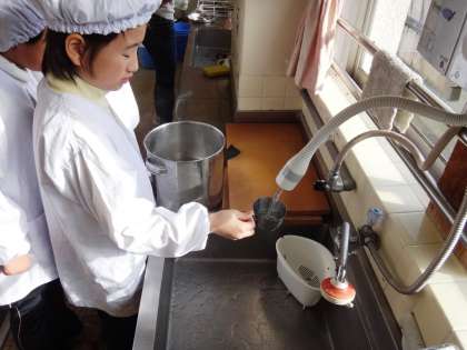 今日は、「てんぐさ」を使って、三宅島の特産の「ところてん」を作り、試食をしました。