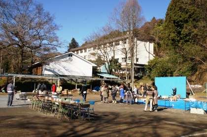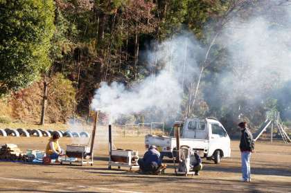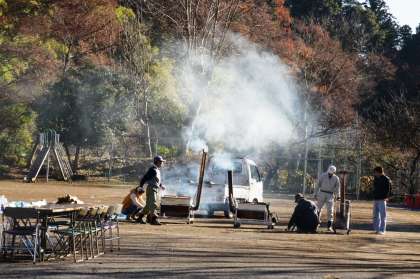 早朝よりPTAや地域の方達が「もちつき会」の準備をしてくださいました。