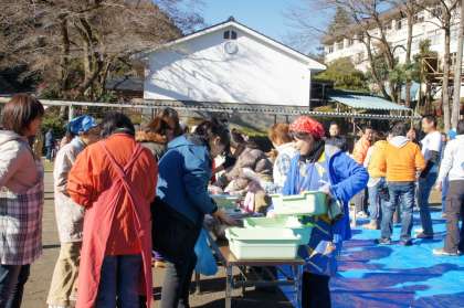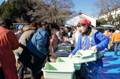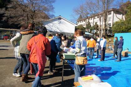 早朝よりPTAや地域の方達が「もちつき会」の準備をしてくださいました。子ども達が校庭に来る前に、何臼かおもちをつきました。そして、「まぶし」も始まりました。