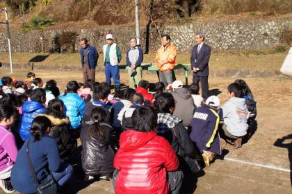 いよいよ3校時が終わり、もちつき会が始まりました。