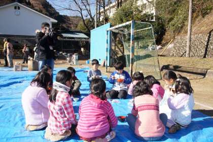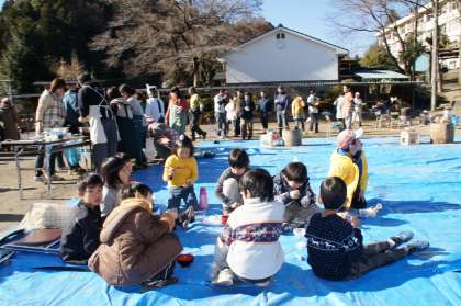 いよいよ「トン汁」と「おもち」を並んでいただきました。そしてクラスで集まっておいしくいただきました。