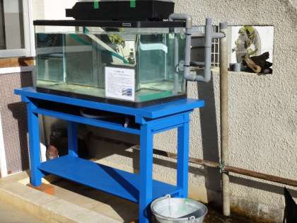 用務主事さんがヤマメの水槽の排水が飛び散らないようにしてくれました。