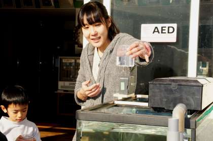 今日の午前中に、奥多摩魚養殖センターのNさんが来校し、ヤマメを水槽に移す手順を教えていただきました。