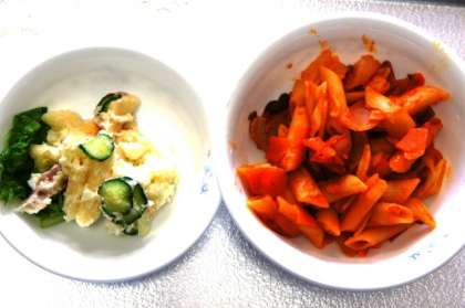 6年生が家庭科の調理実習をしました。サラダとマカロニを校長室に持ってきてくれました。