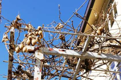 給食室前のキウイーフルーツがまだたくさん残っています。もう一回給食で食べられそうです。