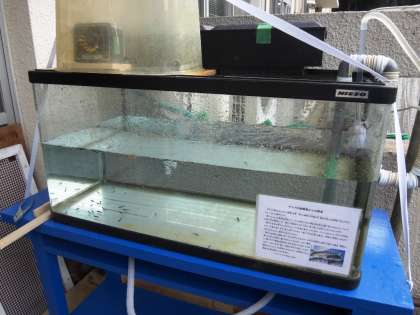 16日(月)の朝、学校に行くと、ヤマメの水槽の水が少なくなっていました。でも、ちゃんと排水はしていました。