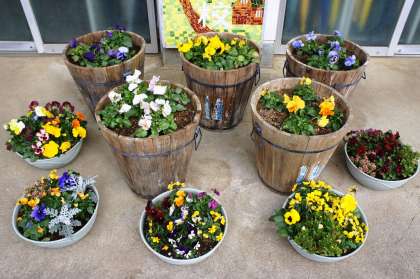 JAからの贈り物があり、用務主事さんが「JA椚田」まで取りに行ってくれました。本来ですと2鉢だけなのですが、全部で5鉢いただきました。