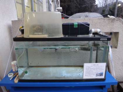 1月17日(火)、11時頃に出張から帰ると奥多摩魚養殖センターの方達が来校してくださり、ヤマメの水槽の修理をしてくれていました。