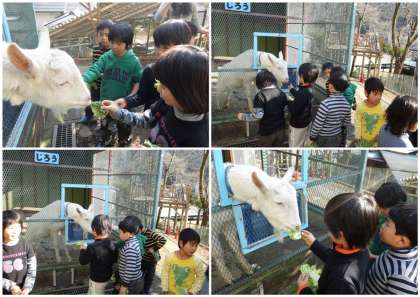 4校時、1年生が畑の片付け作業をしていました。その後、キャベツを二郎君にあげていました。