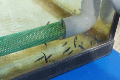 18日(水)、朝、恩二小は気温が「−5度」でした。心配したヤマメの水槽も、水があふれないで排水していました。