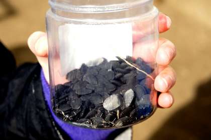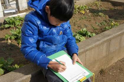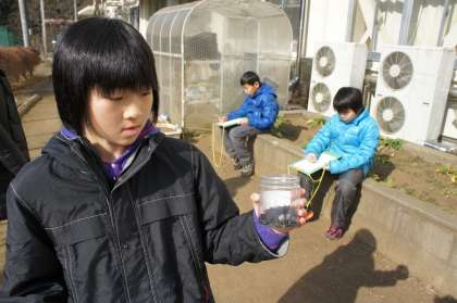 4年生がヘチマの観察をしていました。その後ヘチマ棚の片付けをしました。