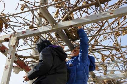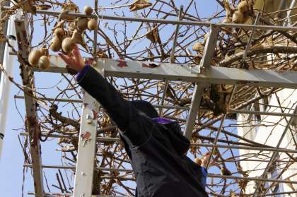 作業がはやく終わったので、給食室前のキウィーフルーツを採ってもらいました。