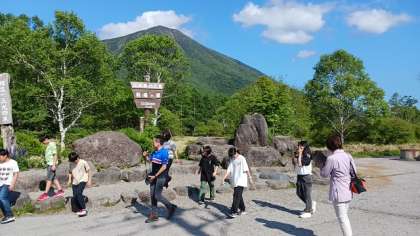 天気がよく男体山もよく見えるので、戦場ケ原の三本松というところで集合写真を撮りました。