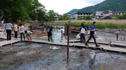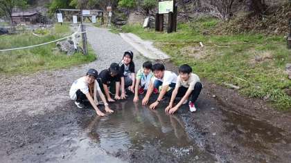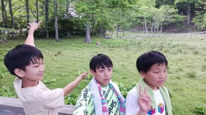 明日のナイトハイクの下見も兼ねて源泉に散策に行きました。木道の近くに鹿がいました。可愛らしかったです。