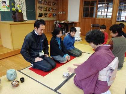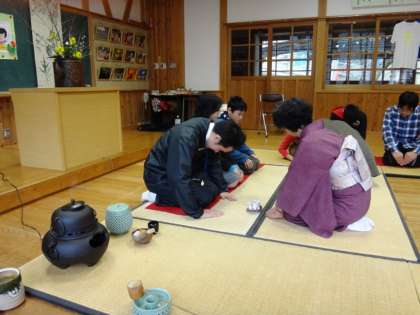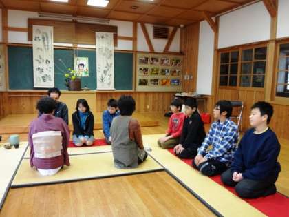 6年生が茶道の学習をしました。講師は本校で退職した音楽担当のS先生です。
