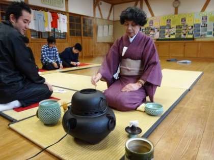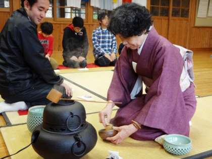 6年生が茶道の学習をしました。講師は本校で退職した音楽担当のS先生です。