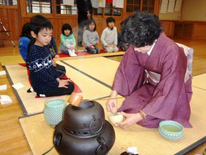 1年生の子ども達はちょっと緊張した様子でしたが、おいしそうに抹茶をいただいていました。