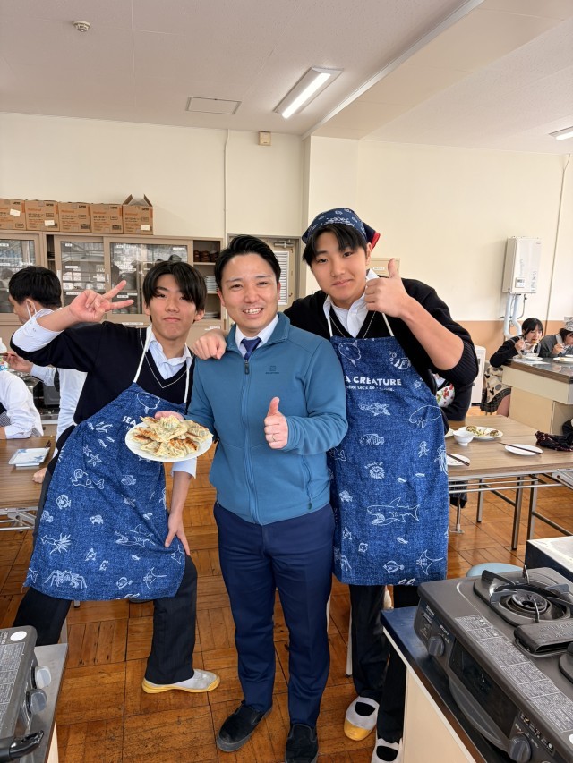 今日は担任の田之倉先生の誕生日。3年2組の調理実習では、生徒たちから大きな餃子のプレゼント🎁和気あいあいと調理実習を楽しんでいました。みんないい笑顔で取り組んでいました。