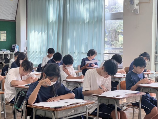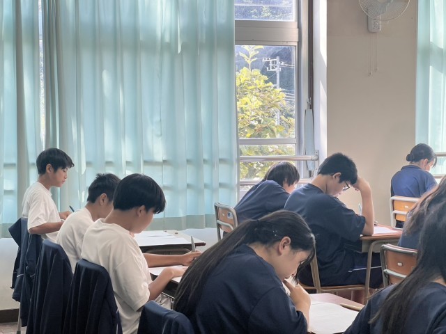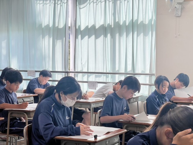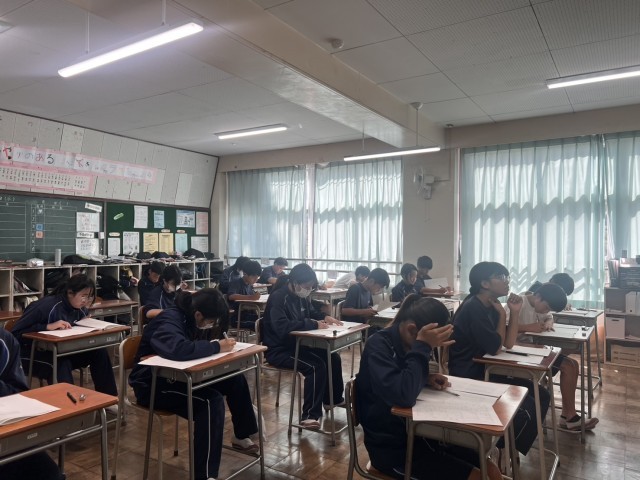 写真は1年生の様子ですが、一学期の成績を受けてそれぞれが目標を立てて臨んだ中間テストでしたので、一問一問にじっくりと取り組む様子が印象的でした。