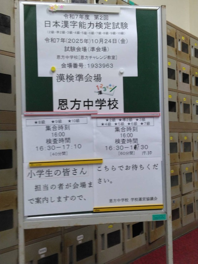 本校では、学校運営協議会主催で希望者を対象に今年度第2回日本漢字能力検定を実施しました。今回も地域の小学生を含めて18名が参加し受検に臨みました。