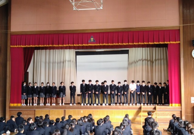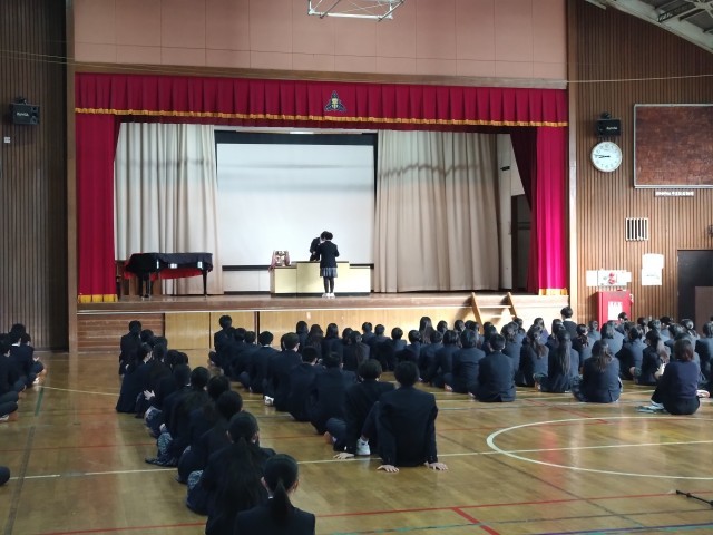 3連休明け火曜日、恩方中学校では全校朝礼を実施しました。