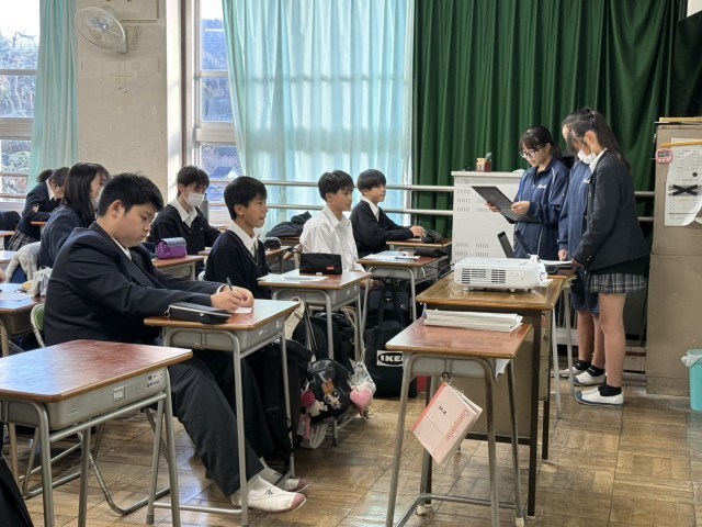 恩方中学校の特色ある教育の一つである異年齢による協働学習の一環として、2年生が10月末に実施した職場体験の成果報告を1年生にプレゼンテーションを実施しました。
