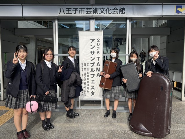多摩音楽振興会主催の2025TAMAアンサンブルフェスタ中学生部門において、本校吹奏楽部の管楽六重奏メンバーが銀賞を受賞しました。1月の東京都中学校吹奏楽連盟主催のアンサンブルコンテストの前哨戦となる大会での銀賞受賞は、今年の締めくくりとして素晴らしい結果となりました。来月の大会も頑張ってください!