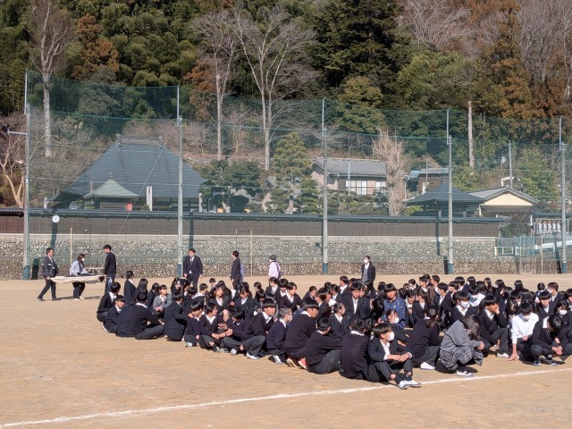 恩方中学校では、地震以外にも火災、土砂災害、不審者、獣害、弾道ミサイルなどを想定した避難訓練を実施しておりますが、その中でも年度の総まとめとして事前予告無しの避難訓練を行っています。これは1年間をかけて学んできたことの集大成として実施するものになります。