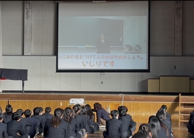 生徒会朝礼でいじめ撲滅に向けた取り組みを生徒会が発表!