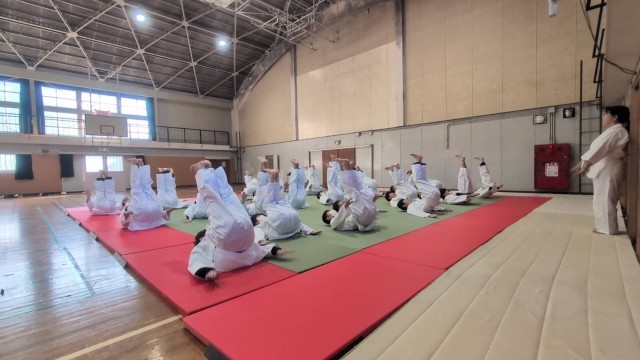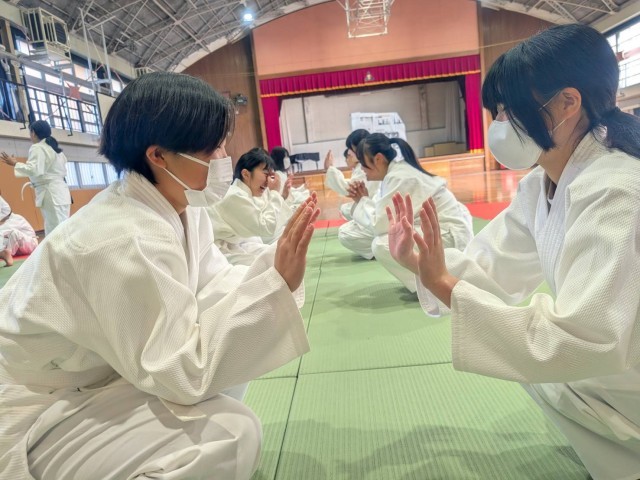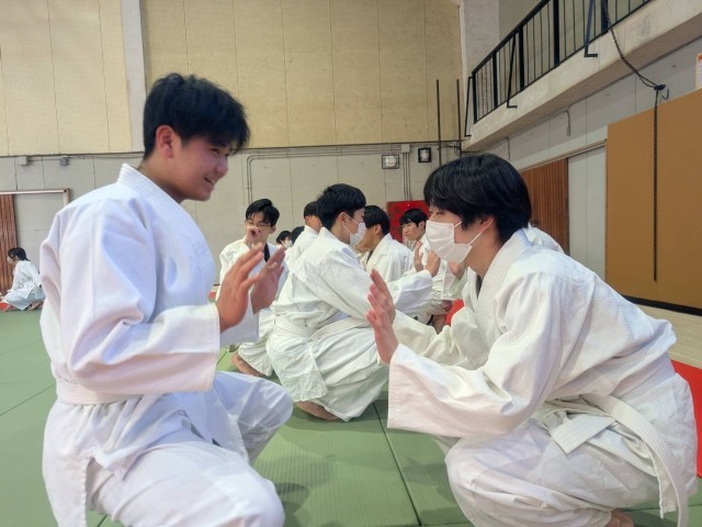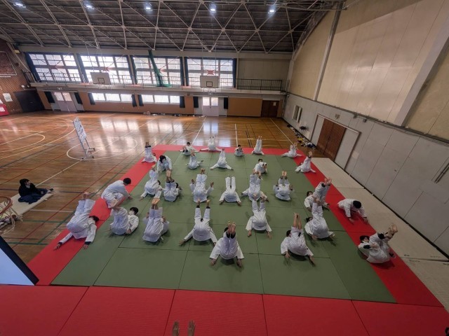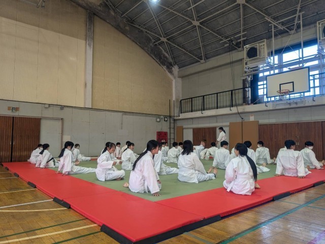 全学年の授業で体育の柔道がスタートしました。体育の教育課程では武道を柔道か剣道いずれかを選択しますが、本校は柔道となっています。写真の3年生の授業の一コマです。