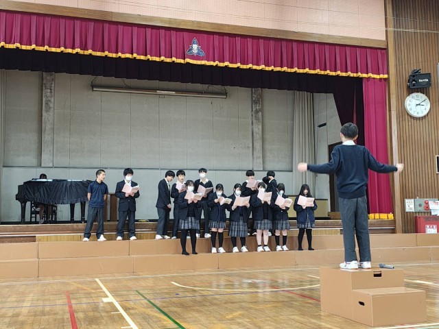 令和7年度から合唱祭が3月に変更になり、初めての三学期の練習がスタートしました。一年生は初めての合唱祭となり、右も左も分からない状況の中での練習。生徒たちも緊張しながら練習に臨んでいました。クラス練習は全11回となります。