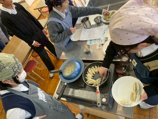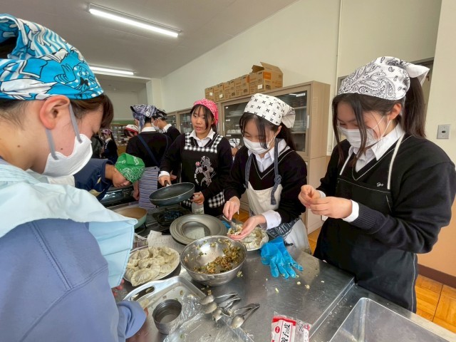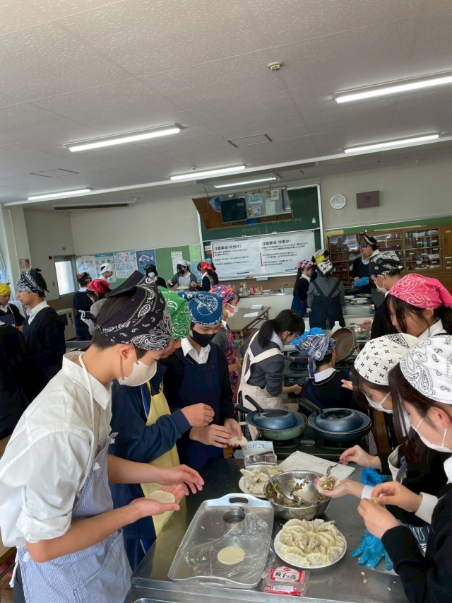生徒たちはお互いに協力し合いながら男女隔てなく、餃子づくりに勤しみ、出来上がった餃子を美味しそうに食べていました。