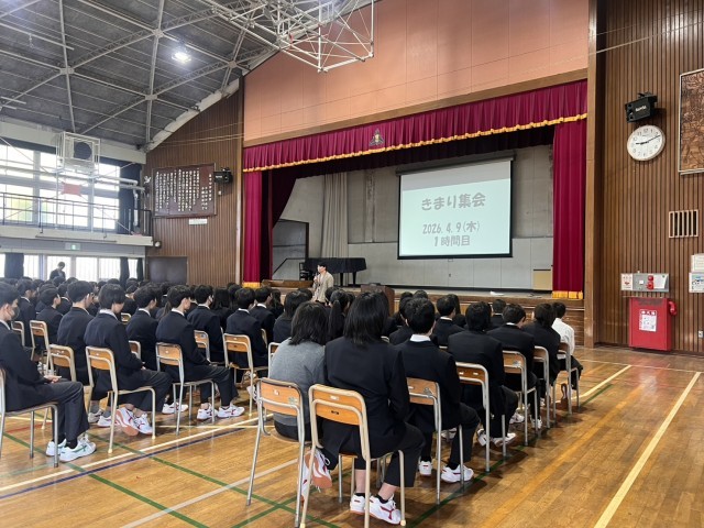 本日、年度初めにあたり、全校生徒を対象に学校生活のきまりを確認する全校集会を実施しました。