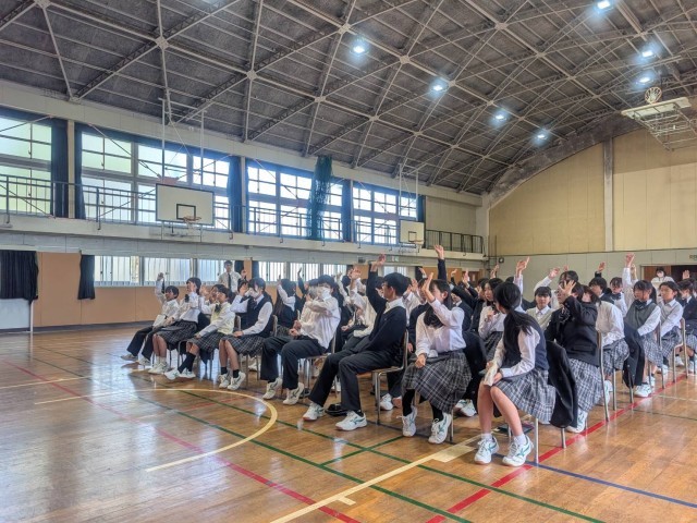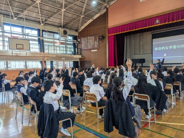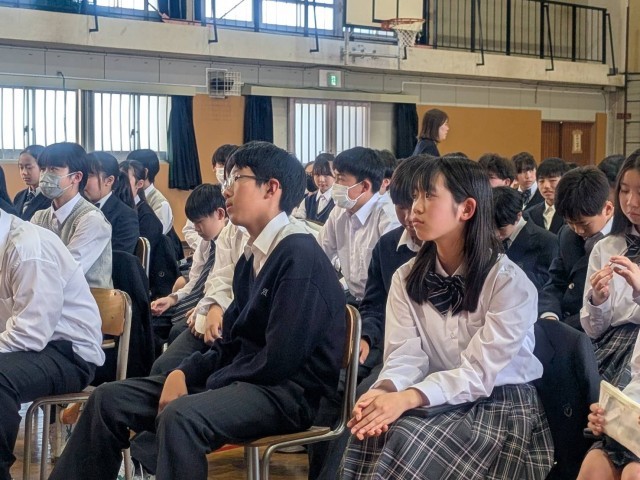 総合的な学習の時間の目的や大切にしたい視点、今後の学習内容について、進路担当の木村先生より説明があり、生徒はこれからの学びへの理解を深めました。