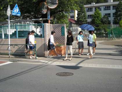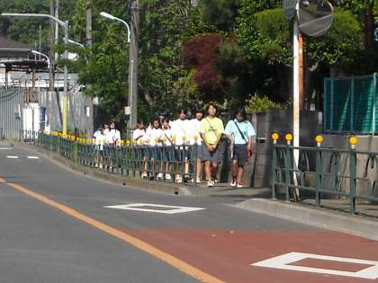 多目的広場で朝練習をしたソフトテニス部女子が元気に戻ってきました。