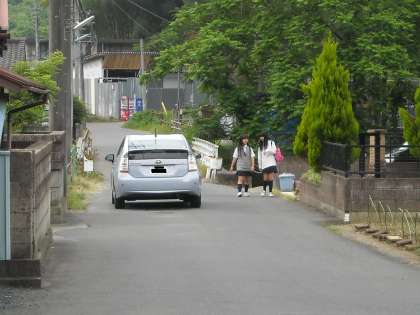 正門前の通りは意外と交通量が多いので気を付けましょう!