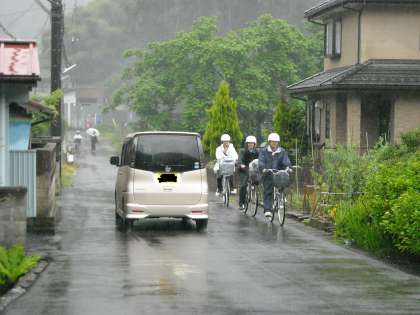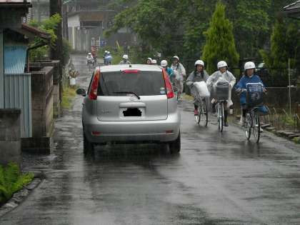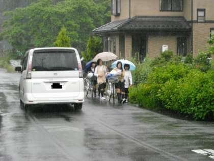 正門前の道は雨でも交通量は多いので気を付けましょう!