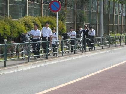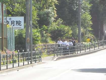 徒歩の生徒は陣馬街道を直進して歩い来る生徒も大勢います。