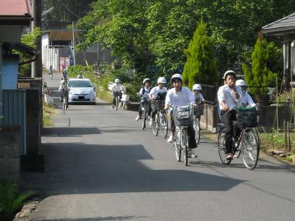 正門前の通りは意外と車の通行量が多くて危険です。気を付けましょう!