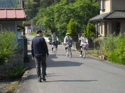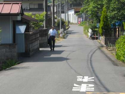 馬場先生は巡回指導に橋の先まで歩いていきました。