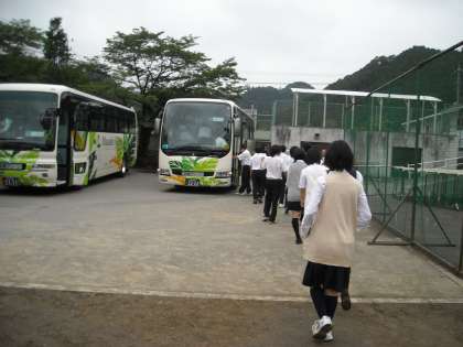 バスに乗り込んで新しいオリンパスホールへ行きます。