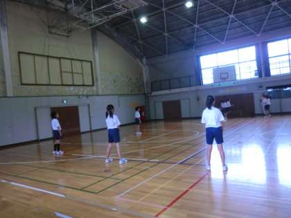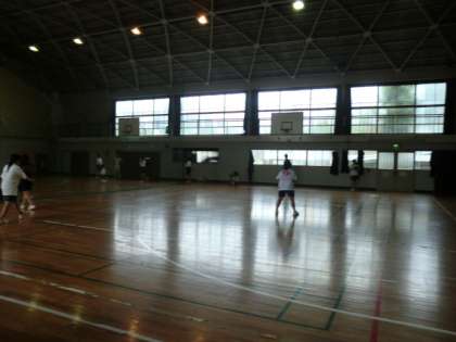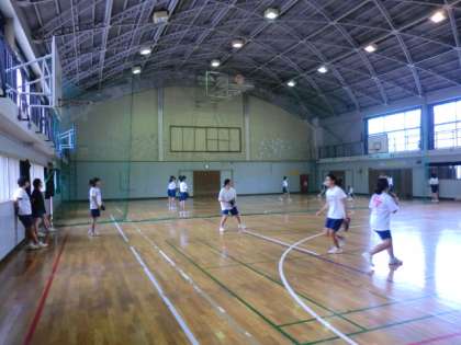 明日の試合に備えて、体育館で練習です。