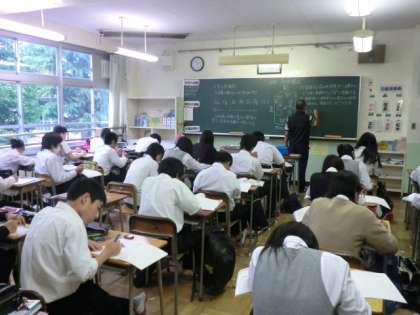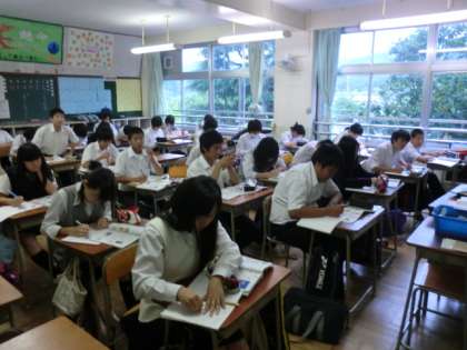 粕谷先生の指導で、生徒は番所をノートに記入していました。