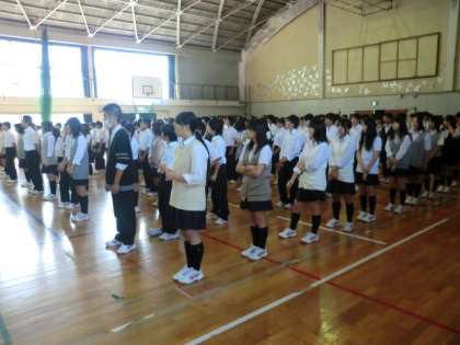 生徒は、しっかりとした姿勢で話を聞いていました。