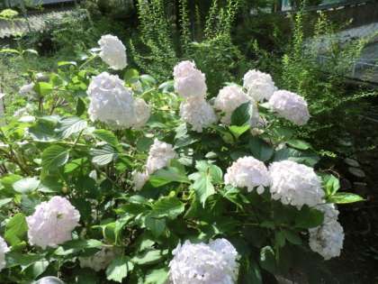 朝日を浴びて、アジサイも気持ちよさそうです。